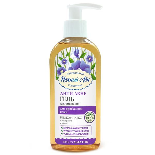 Способ применения: легкими движениями распределите небольшое количество геля по влажной коже лица, помассируйте круговыми движениями 1-2 минуты и смойте теплой водой. После умывания рекомендуем воспользоваться лосьоном для проблемной кожи "Нежный Лён"